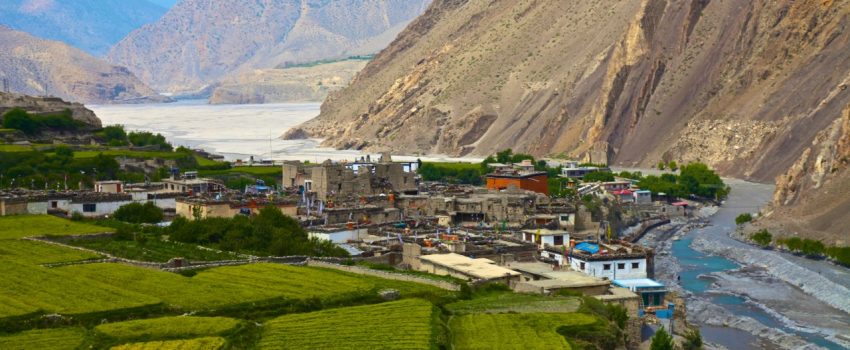 Our journey starts with a special permit check up and onwards to the riverbank of Kaligandaki up stream. During the walk we have scenic picturesque place to stop through the sandy and windy trails. This trails follows the up and downhill. Firstly we reach Tangbe village with narrow alleys amongst white washed houses, fields of buckwheat, barley, wheat and apple orchards. From there we trek forward to Chhusang and after crossing the river head up to the huge red chunk of conglomerate that has fallen from the cliff above, forming a tunnel through which the Kaligandaki follows. We head on to small ridges reach at Chele village.